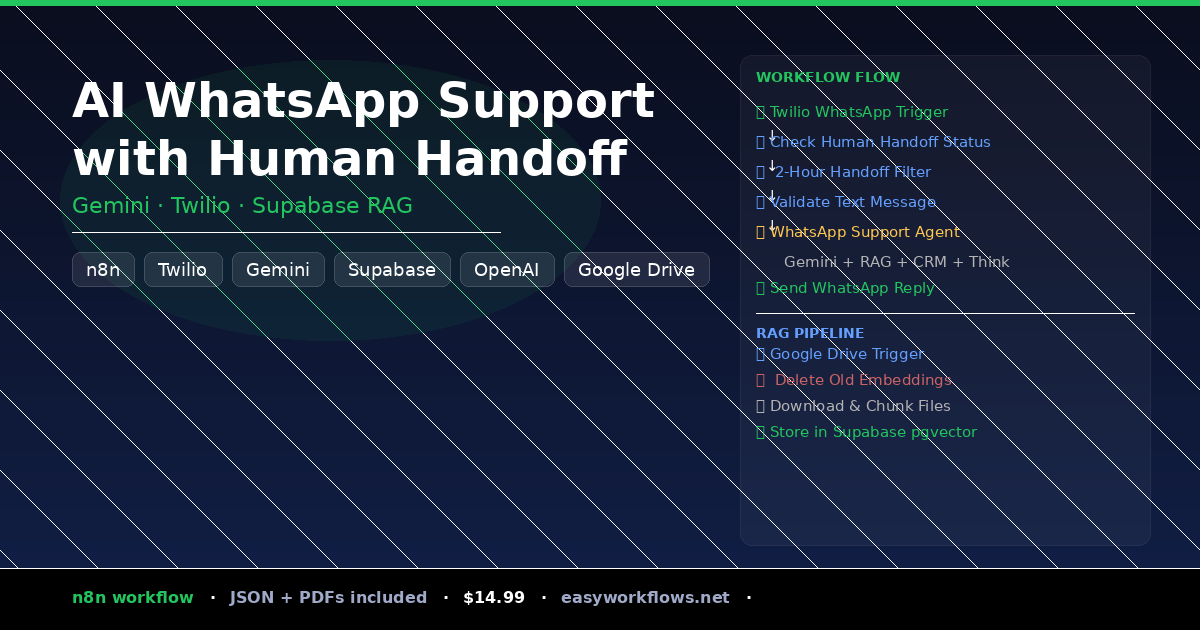 AI WhatsApp Support with Human Handoff — Gemini + Twilio + Supabase RAG